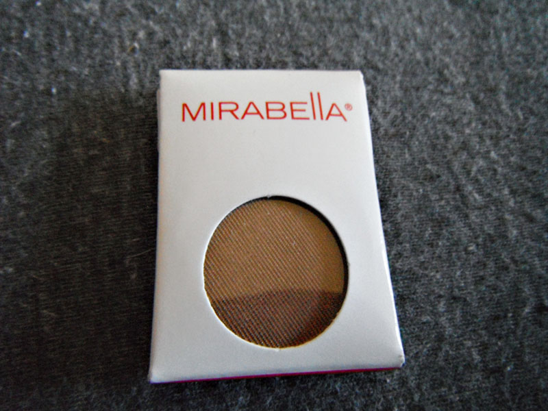 This is a pan shadow by Mirabella! The shade received is "Semiformal", which is a nice subtle brown with a pearly finish. This is a great neutral for me, not too dark, and it doesn't pull too warm. While I don't find it super pigmented, I don't mind that with shades like this. It is nice and soft and satiny. My only complaint about this product is that I don't have an empty palette to put it in.